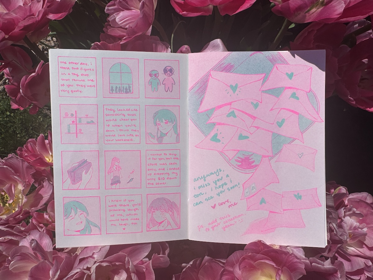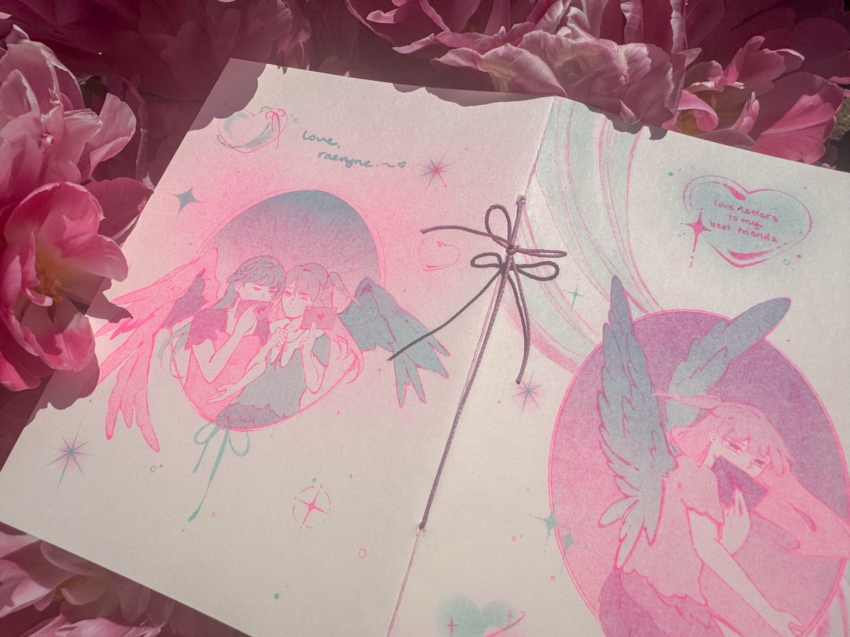 hi, i'm rae ꕥ a risograph print artist creating zines & comics, prints, and enamel pins inspired by games and anime ۪۪۫۫ ・˚⁺ೀ⋆༓˚